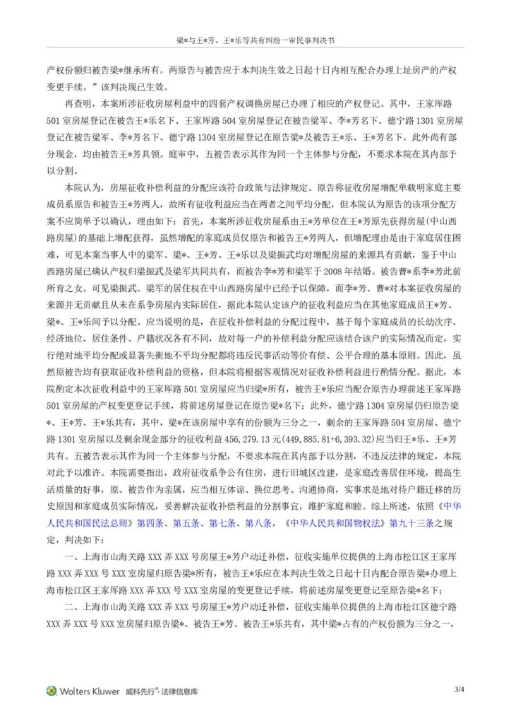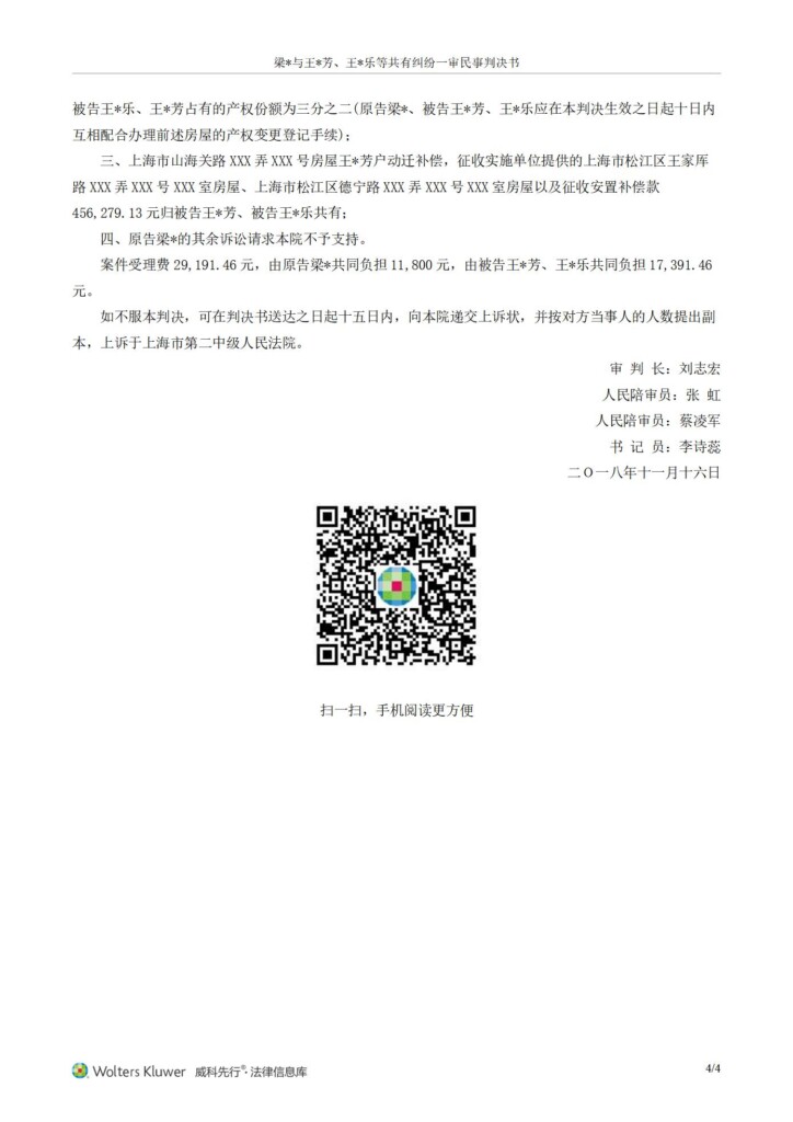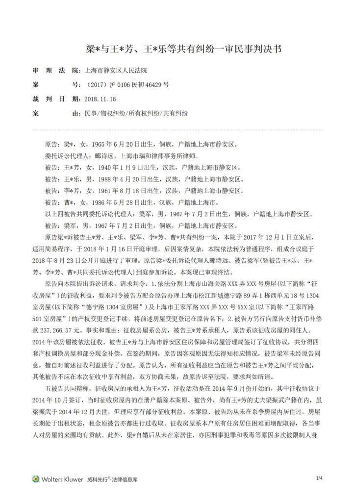 (2017)沪0106民初46429号-梁红与王兰芳、王家乐等共有纠纷一审民事判决书_01