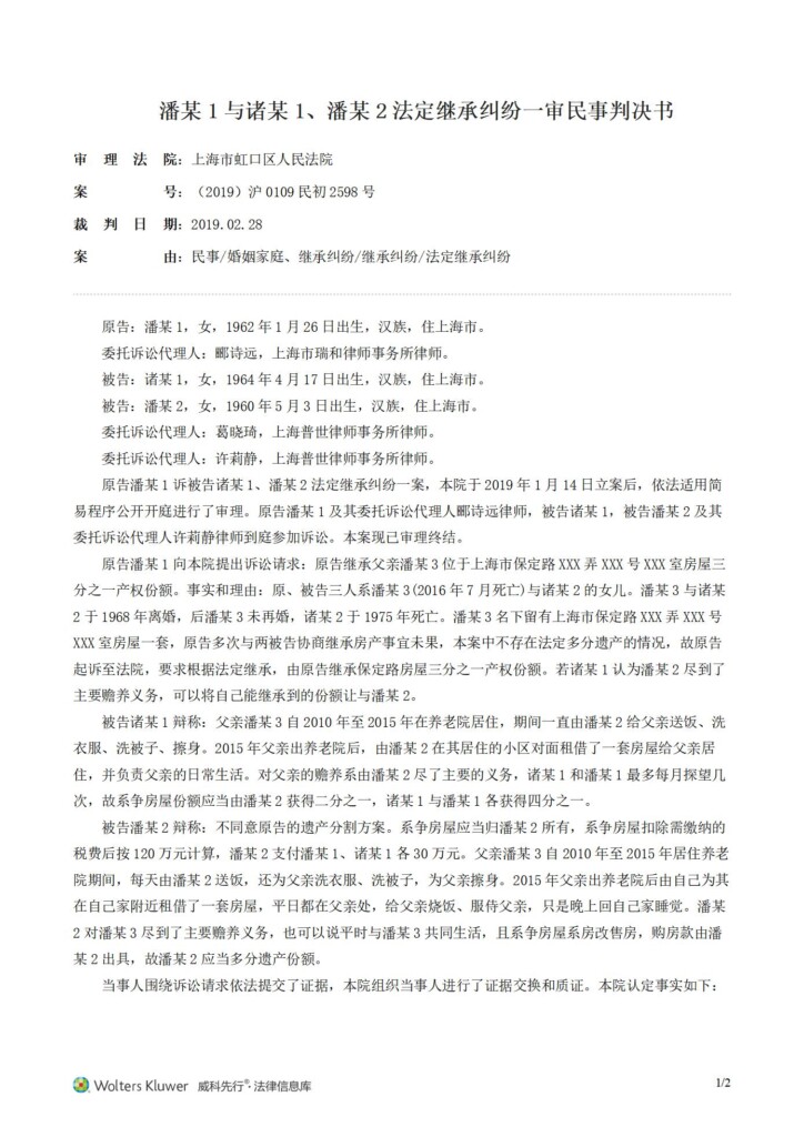 (2019)沪0109民初2598号-潘某1与诸某1、潘某2法定继承纠纷一审民事判决书_01