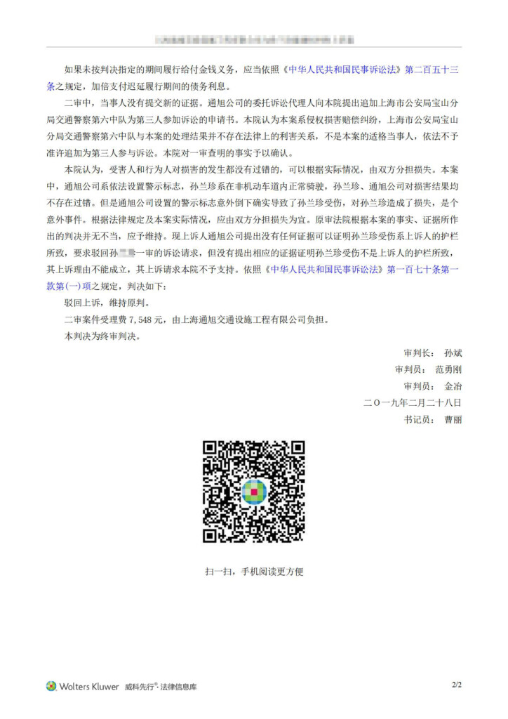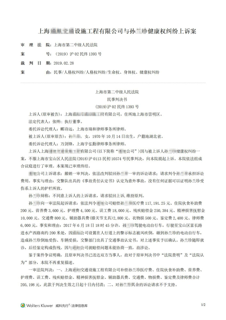(2019)沪02民终1393号-上海通旭交通设施工程有限公司与孙兰珍健康权纠纷上诉案_01