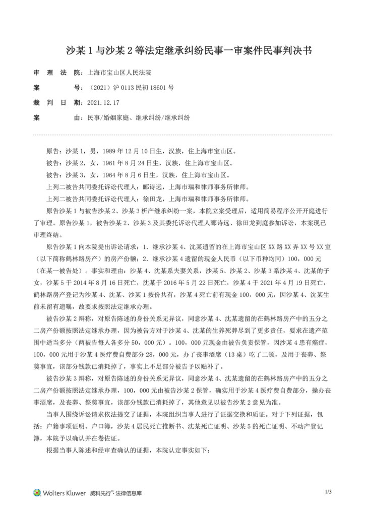 0_0003_(2021)沪0113民初18601号-沙某1与沙某2等法定继承纠纷民事一审案件民事判决书_20251226060622_01