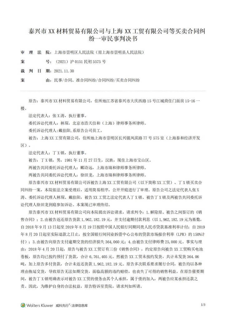 (2021)沪0151民初5575号-泰兴市星轮金属材料贸易有限公司与上海海晋工贸有限公司等买卖合同纠纷一审民事判决书_01