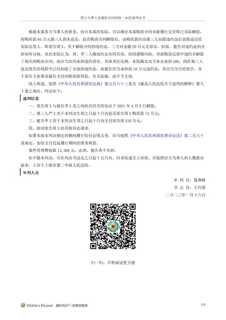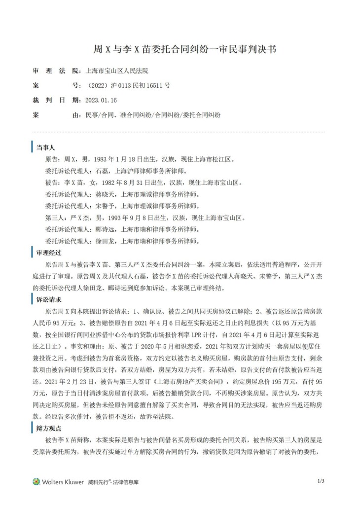 (2022)沪0113民初16511号-周斐与李苗苗委托合同纠纷一审民事判决书_01