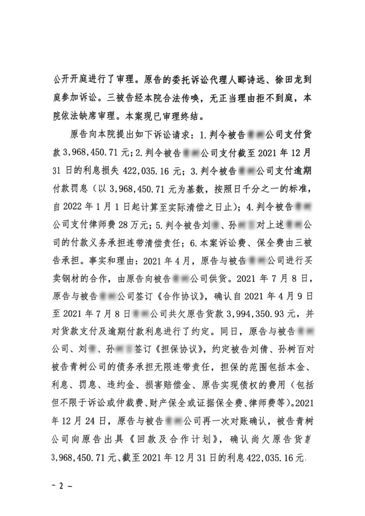 (2022)沪0113民初5718号民事判决书-玉马国际贸易(上海)有限公司与上海青树钢结构有限公司、刘倩、孙树百买卖合同纠纷