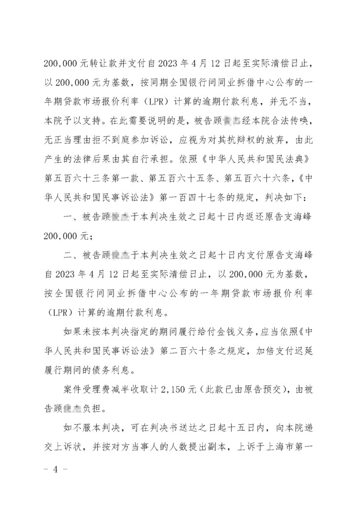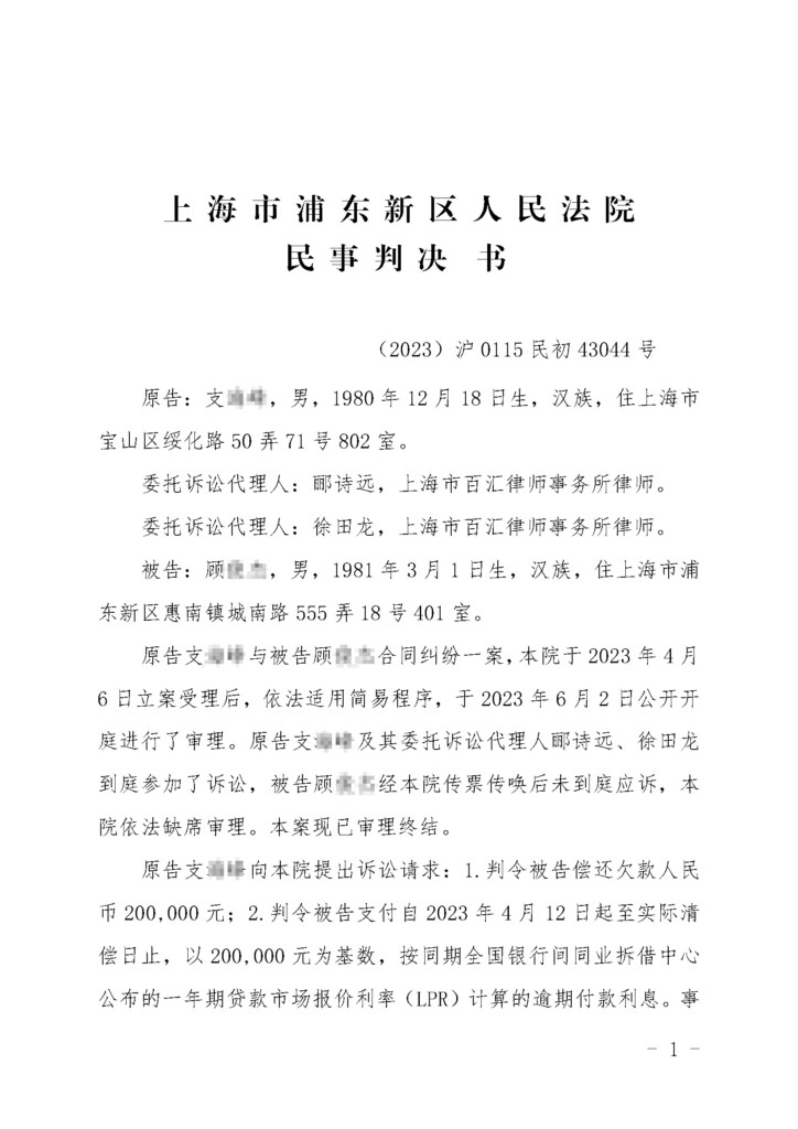 (2023)沪0115民初43044号-支海峰与顾俊杰合同纠纷民事判决书_页面_1