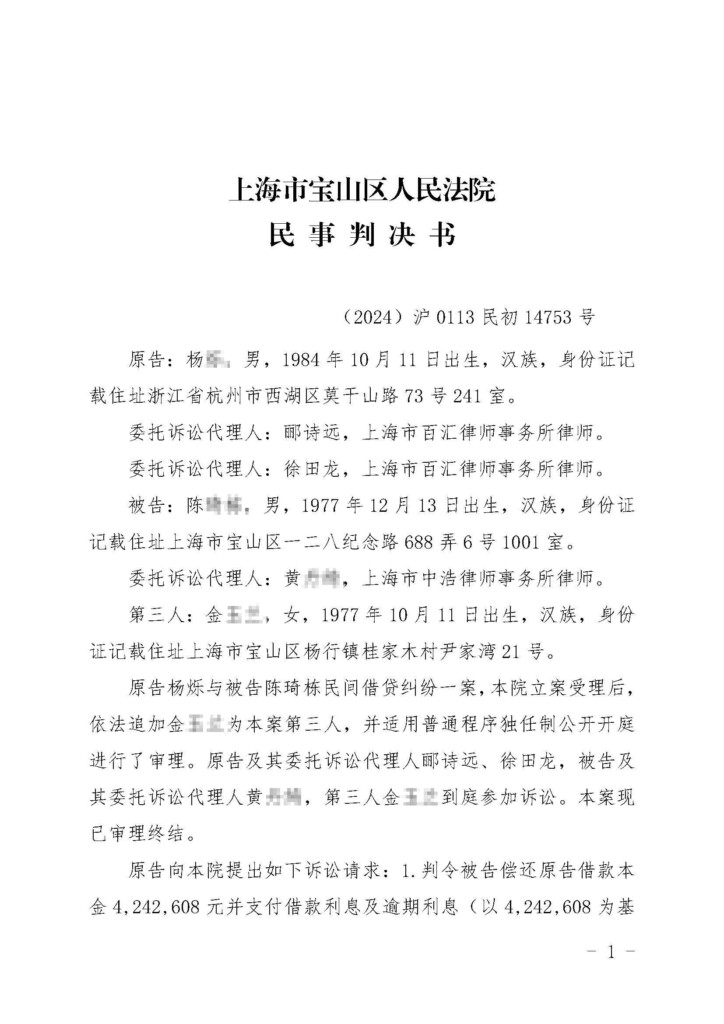 (2024)沪0113民初14753号-杨烁与陈琦栋民间借贷纠纷民事判决书_00