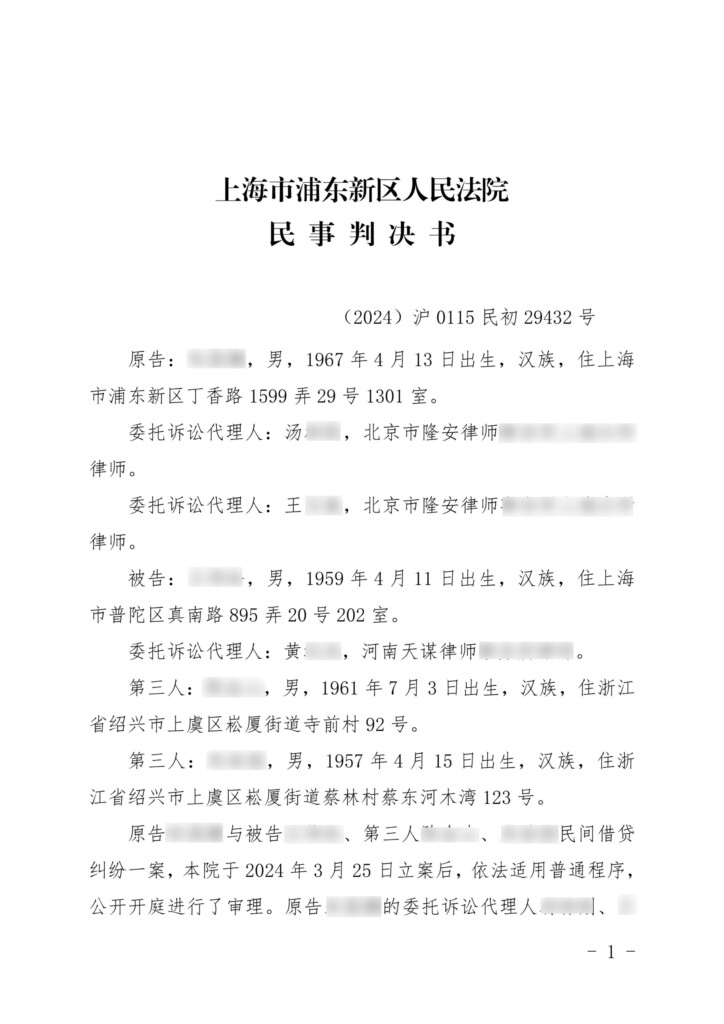 (2024)沪0115民初29432号-朱国潮与王伟松等民间借贷纠纷民事判决书-1