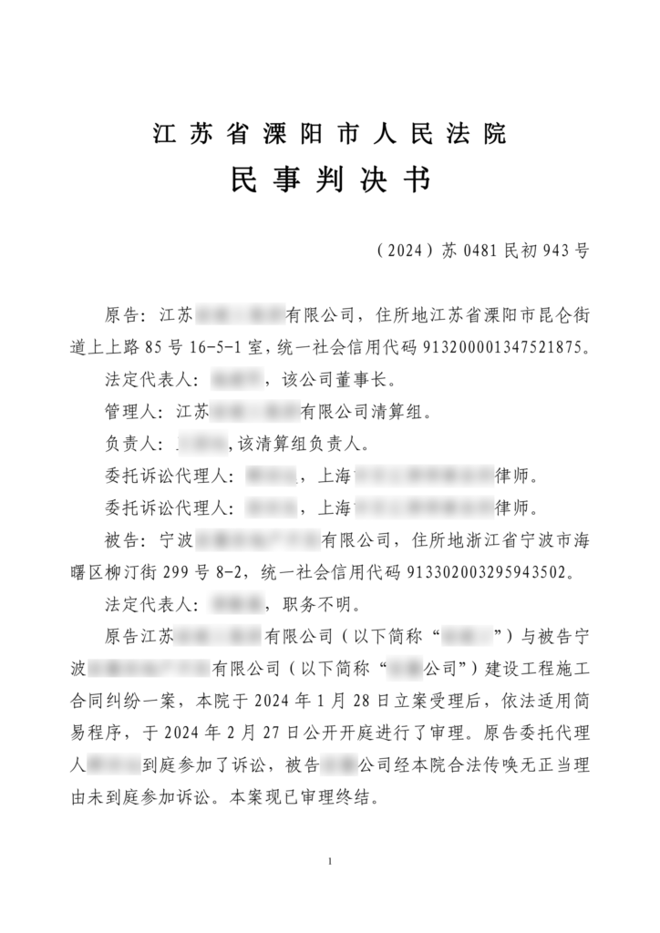 (2024)苏0481民初943号-江苏建工集团有限公司与宁波星馨房地产开发有限公司建设工程施工合同纠纷民事判决书-1