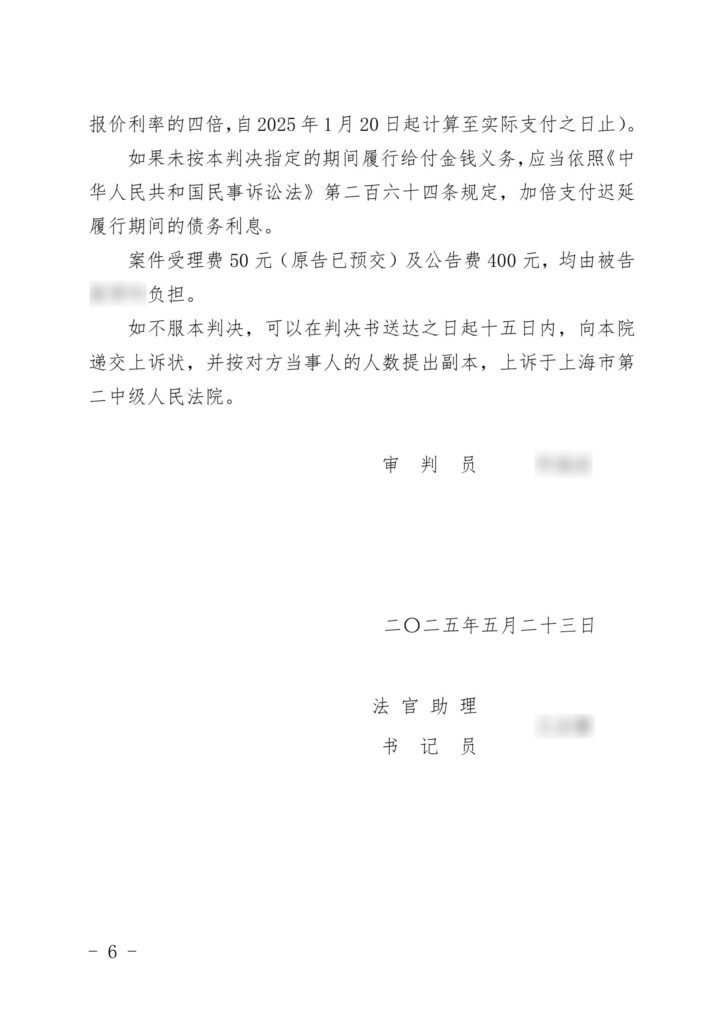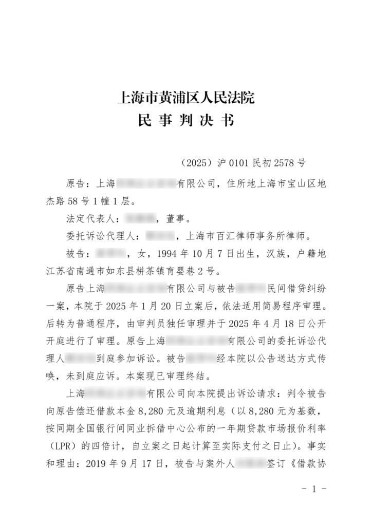 (2025)沪0101民初2578号-上海同炯企业咨询有限公司与蔡琴吟民间借贷纠纷民事判决书-1